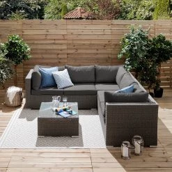 Jardi Salon Paradise Lounge II (4 Ă©lĂ©ments) – Tissu / Polyrotin – Anthracite / Marron