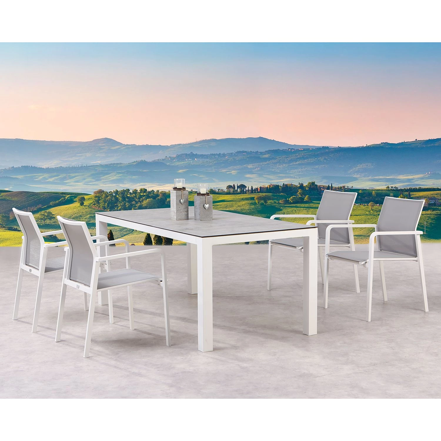 - Revêtement et plateau de table : gris