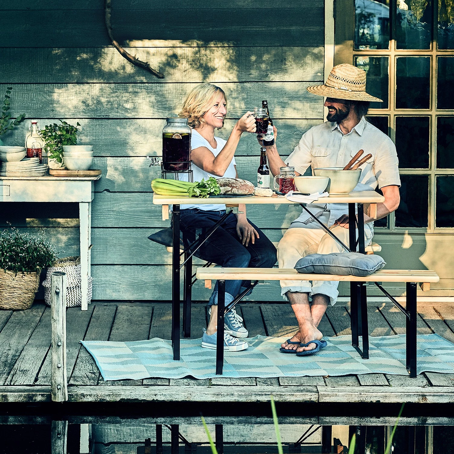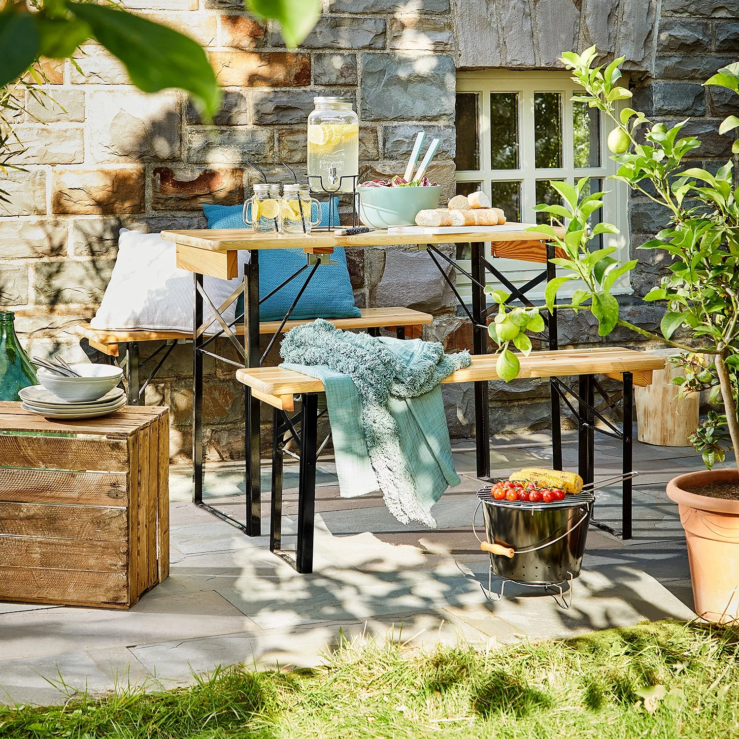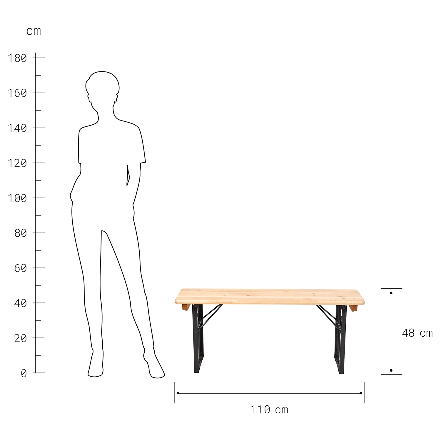 - Bancs (LxHxP) : 110 x 25 x 48 cm chaque