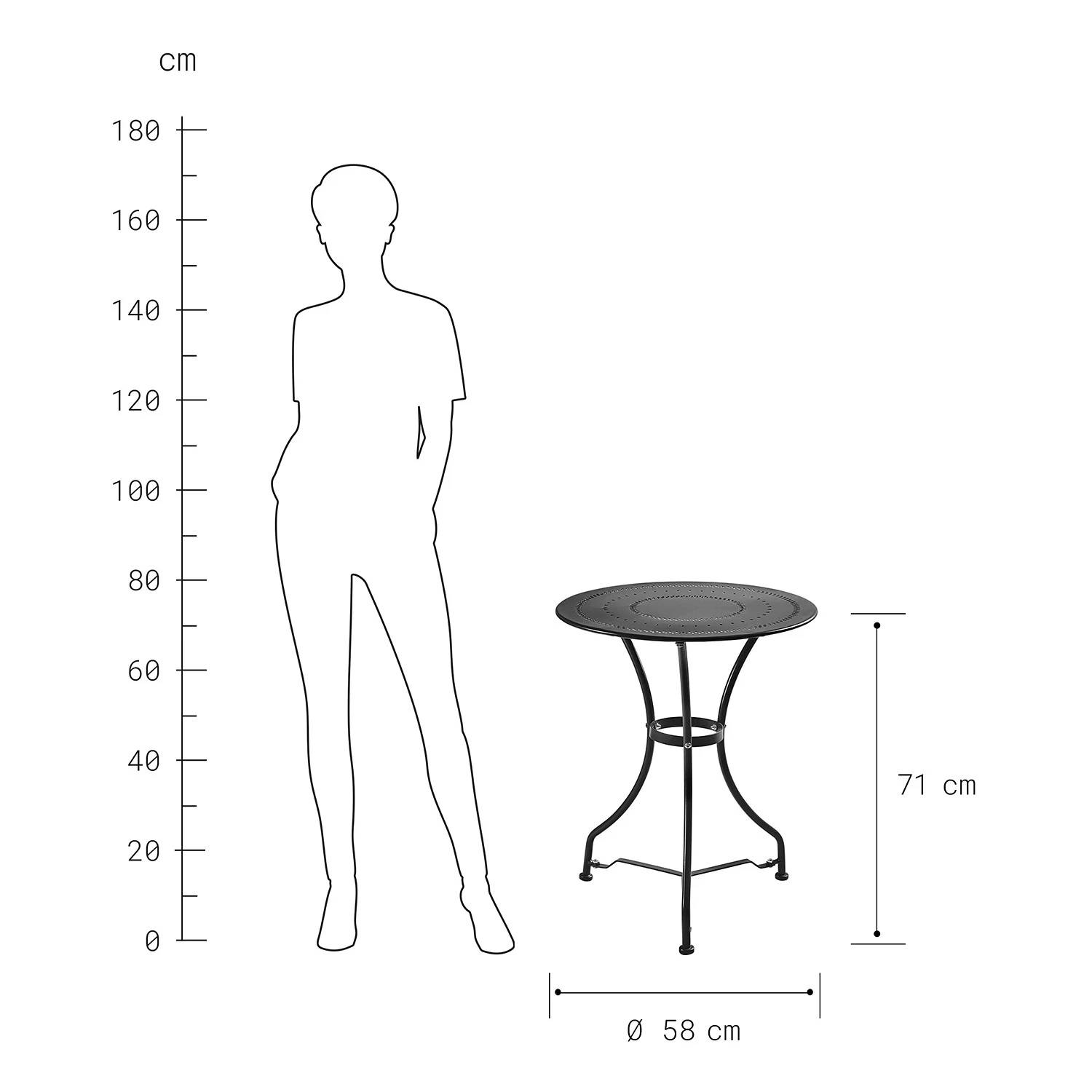 - Table : Ø 58 cm, hauteur 71 cm