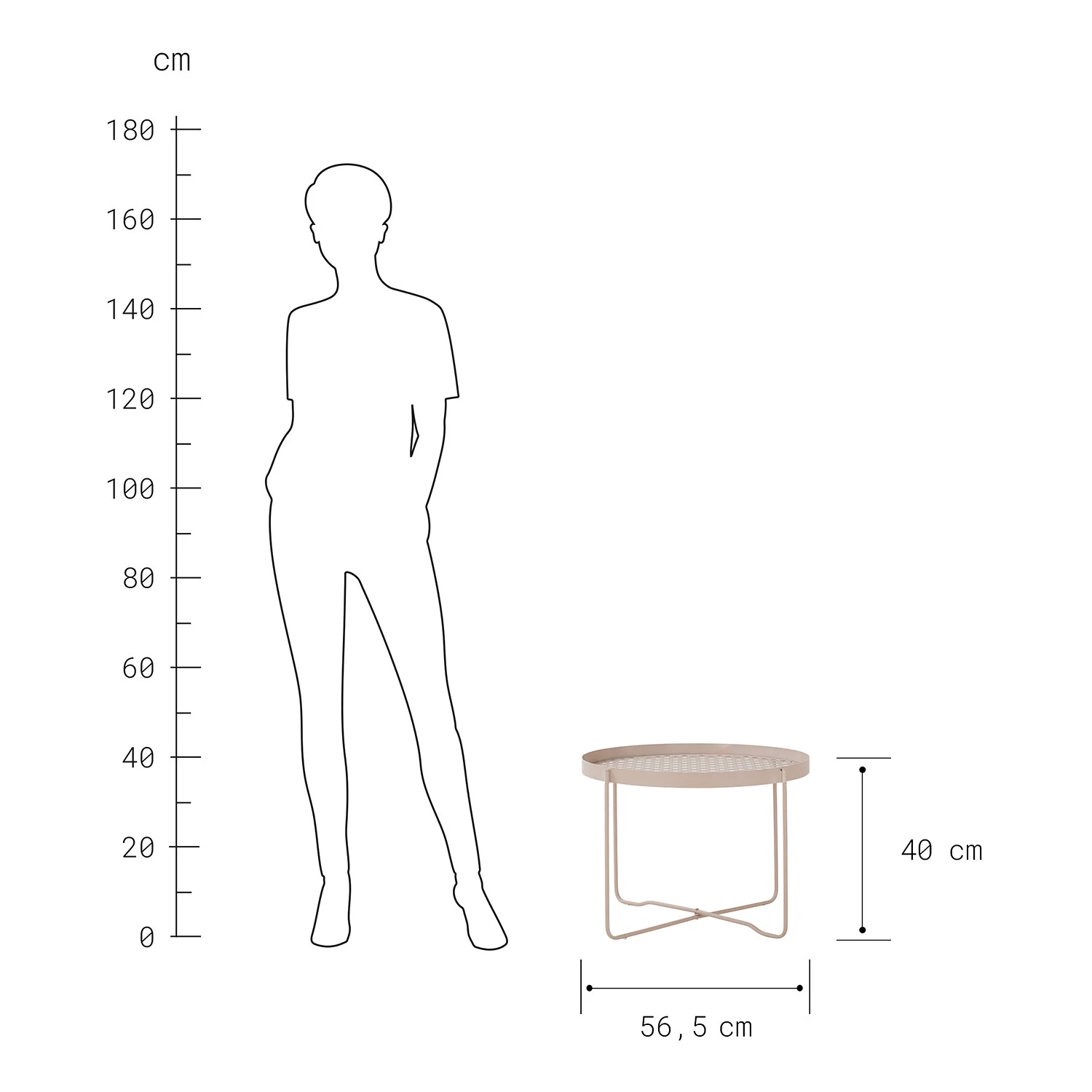 - Bout de canapé : Ø 56,5 cm, hauteur 40 cm, hauteur du bord : 3 cm
