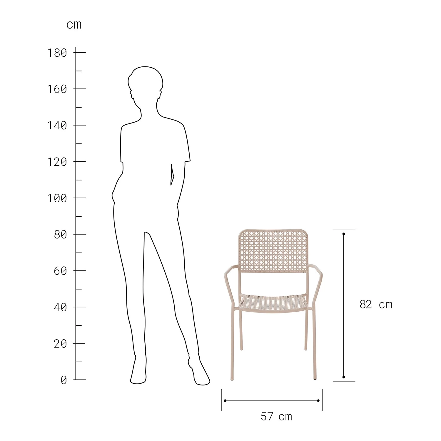 - Chaise empilable : largeur 57 cm x profondeur 58,5 cm x hauteur 82 cm