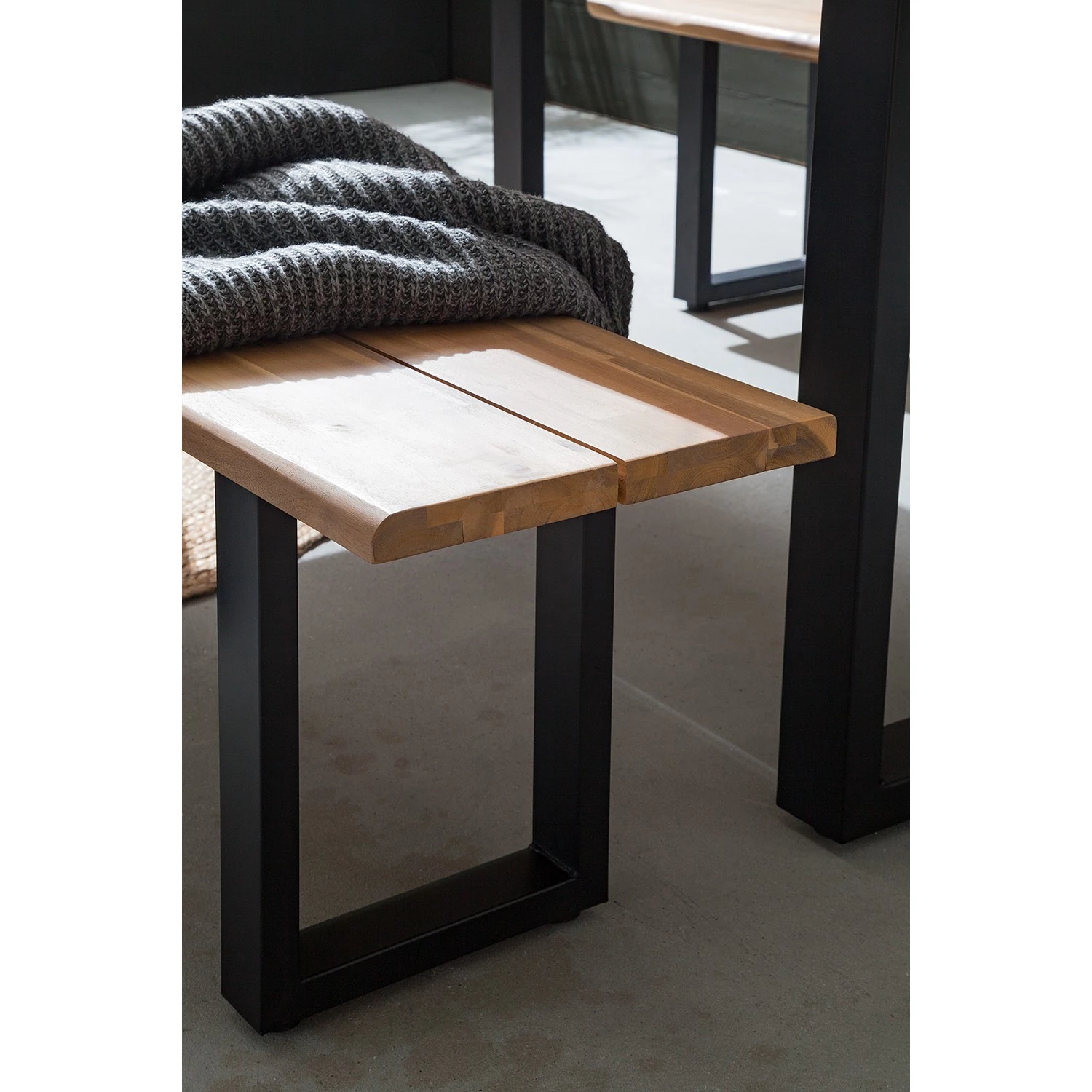 - Plateau de table et surface d’assise : acacia massif enduit