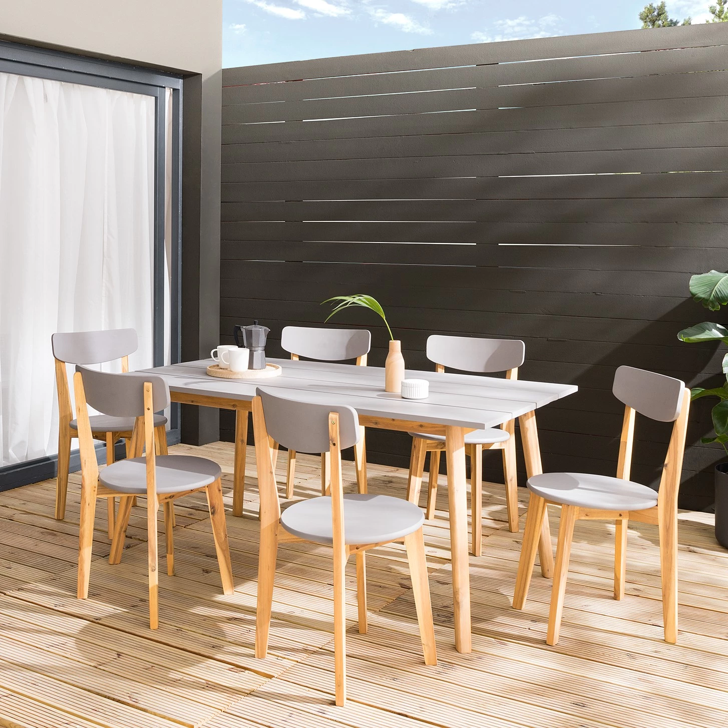 - Chaises (LxHxP) : 48 cm x 83 cm x 42 cm chaque