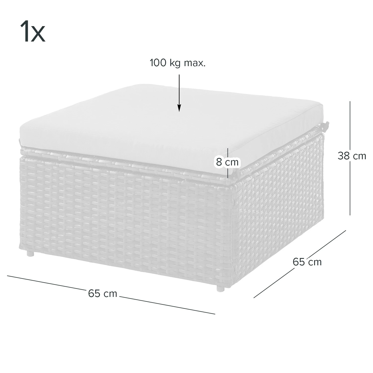 - Table / Repose-pieds (LxHxP) : 65 x 32 x 65 cm chaque