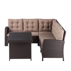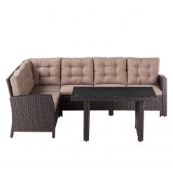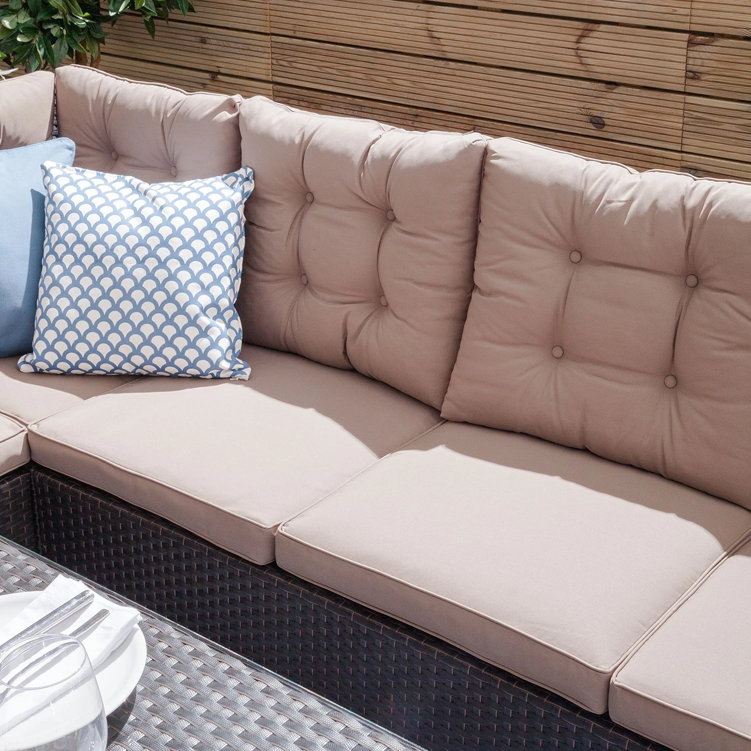 - 1 banc d’angle avec 13 coussins et 1 table de jardin