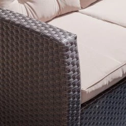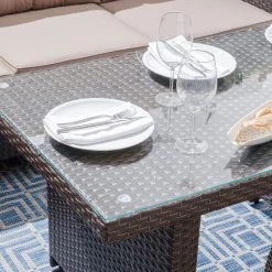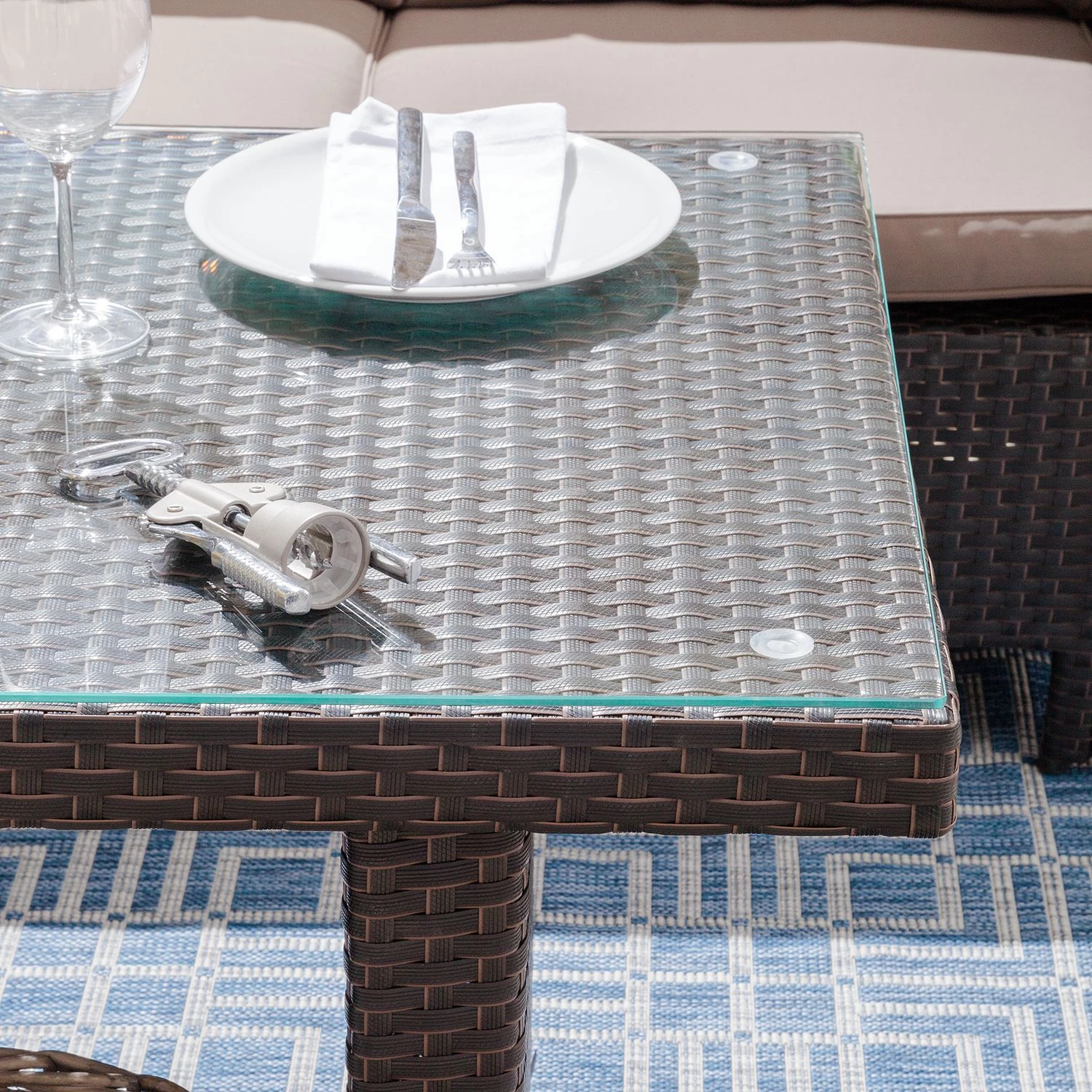 - Assise, accoudoir et table en polyrotin facile à entretenir